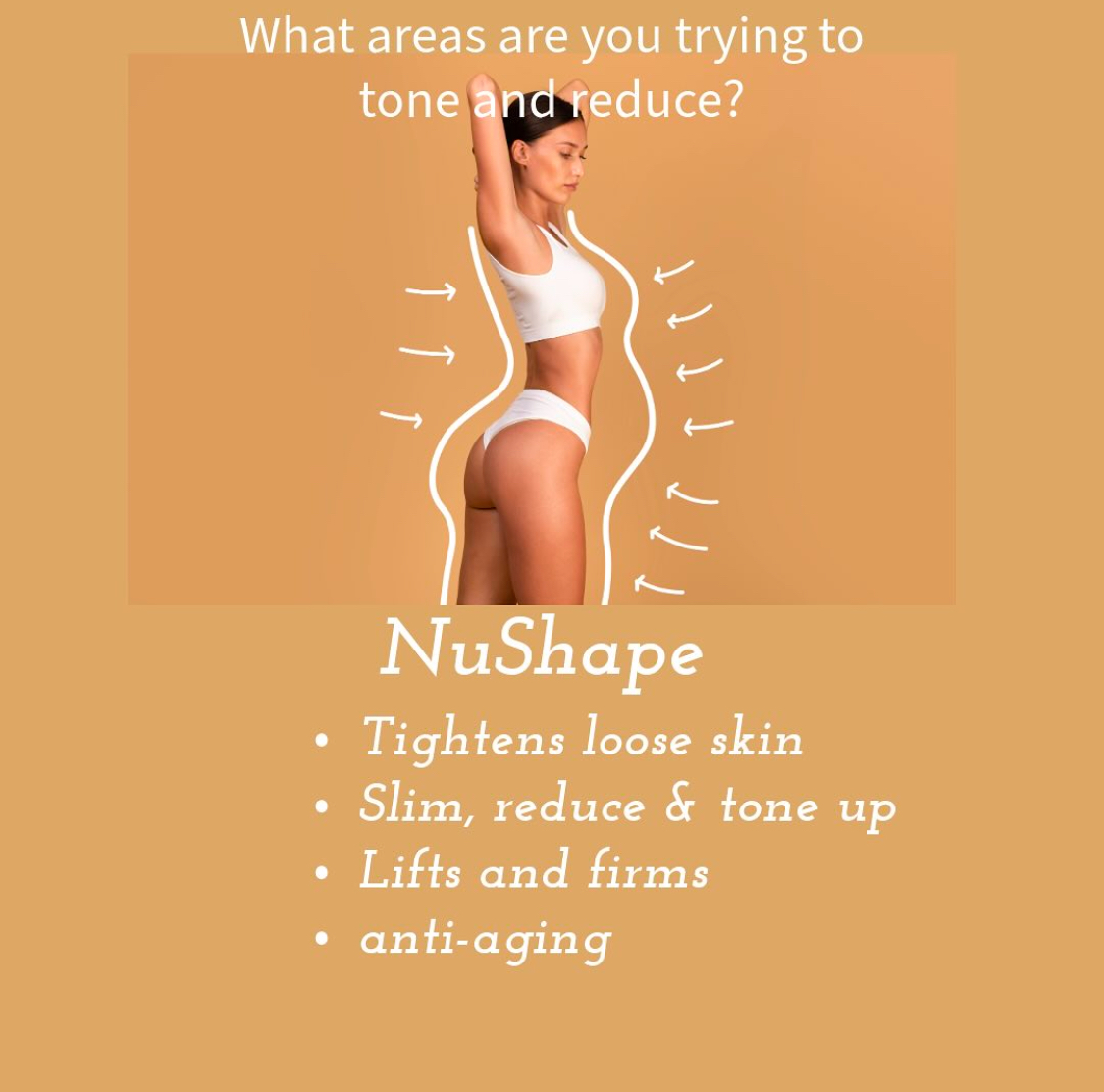 Designed for use on both the face and body, NuShape is ideal for targeting areas such as the thighs, buttocks, torso, and arms.