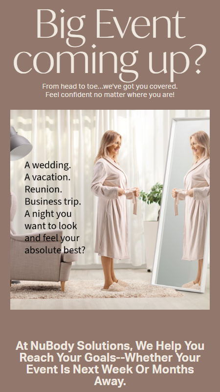 At NuBody Solutions, we offer head to toe solutions so you can look your best for whatever life has coming up… from quick glow ups to full transformation.