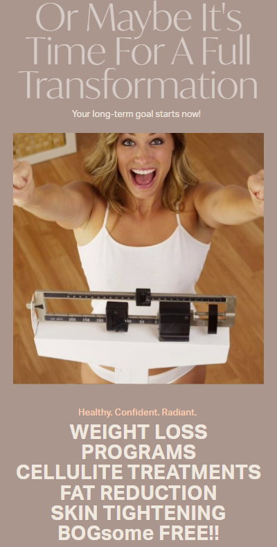 Personalized, One-on-One ConsultationsWe believe in tailoring every plan to fit your unique body, skin, and health goals. During your FREE consultation, our clinicians take the time to listen to your concerns and goals, ensuring that we create a customized program that works within your budget while addressing your individual needs.
